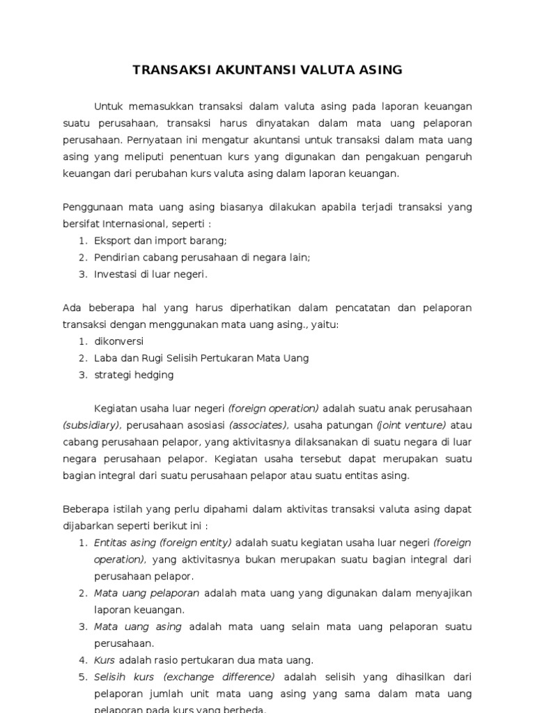 Yq3cwbjwluc0 M from astried_permanasari.staff.gunadarma.ac.id Mata uang asing ini tidak berlaku sebagai alat pembayaran yang sah untuk transaksi dalam negeri, tetapi banyak digunakan dalam transaksi dan keuangan internasional. Monetarisme adalah sebuah teori ekonomi yang banyak membahas tentang permintaan dan penawaran uang. Misalnya, penurunan harga sekuritas investasi, penurunan nilai tukar valuta asing, dan penurunan harga karena penahanan persediaan. Analisis teknis atau lebih dikenal dengan istilah analisis teknikal adalah suatu teknik analisis yang dikenal dalam dunia keuangan yang digunakan untuk memprediksi trend suatu harga saham dengan cara mempelajari data pasar yang lampau, terutama pergerakan harga dan volume pada awalnya analisis teknikal hanya memperhitungkan pergerakan harga pasar atau instrumen yang bersangkutan, dengan asumsi. Uang adalah salah satu topik utama dalam pembelajaran ekonomi dan finansial. Paper money), or trading peers, during the eras of the gold standard, and also as a store of value, or to support the value of the national currency. Transfer valas (valuta asing) adalah fitur layanan pada aplikasi digibank by dbs yang dapat digunakan oleh nasabah untuk melakukan pengiriman dana dalam mata uang asing (remittance) yang diinginkan, untuk penerima di dalam atau di luar negeri. Jul 17, 2020 · valuta asing atau sering disebut kurs (exchange rate) adalah tingkat harga yang disepakati penduduk kedua negara untuk saling melakukan perdagangan.